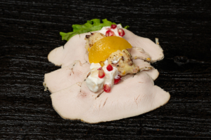Kalkúnabringa með bakaðri fyllingu, eplasalati og granateplum