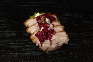 Purusteik með pikkluðu rauðkáli og eplasalati